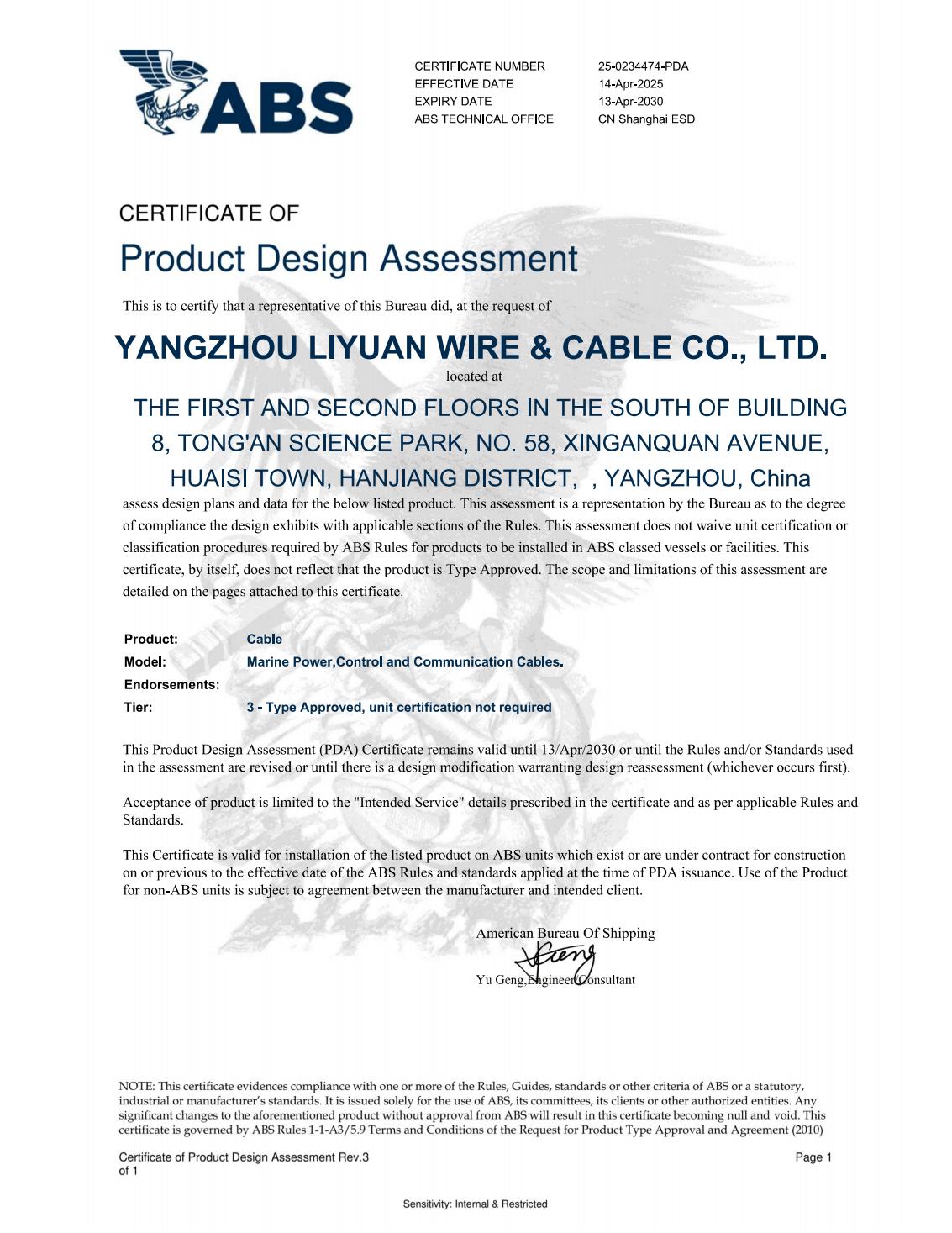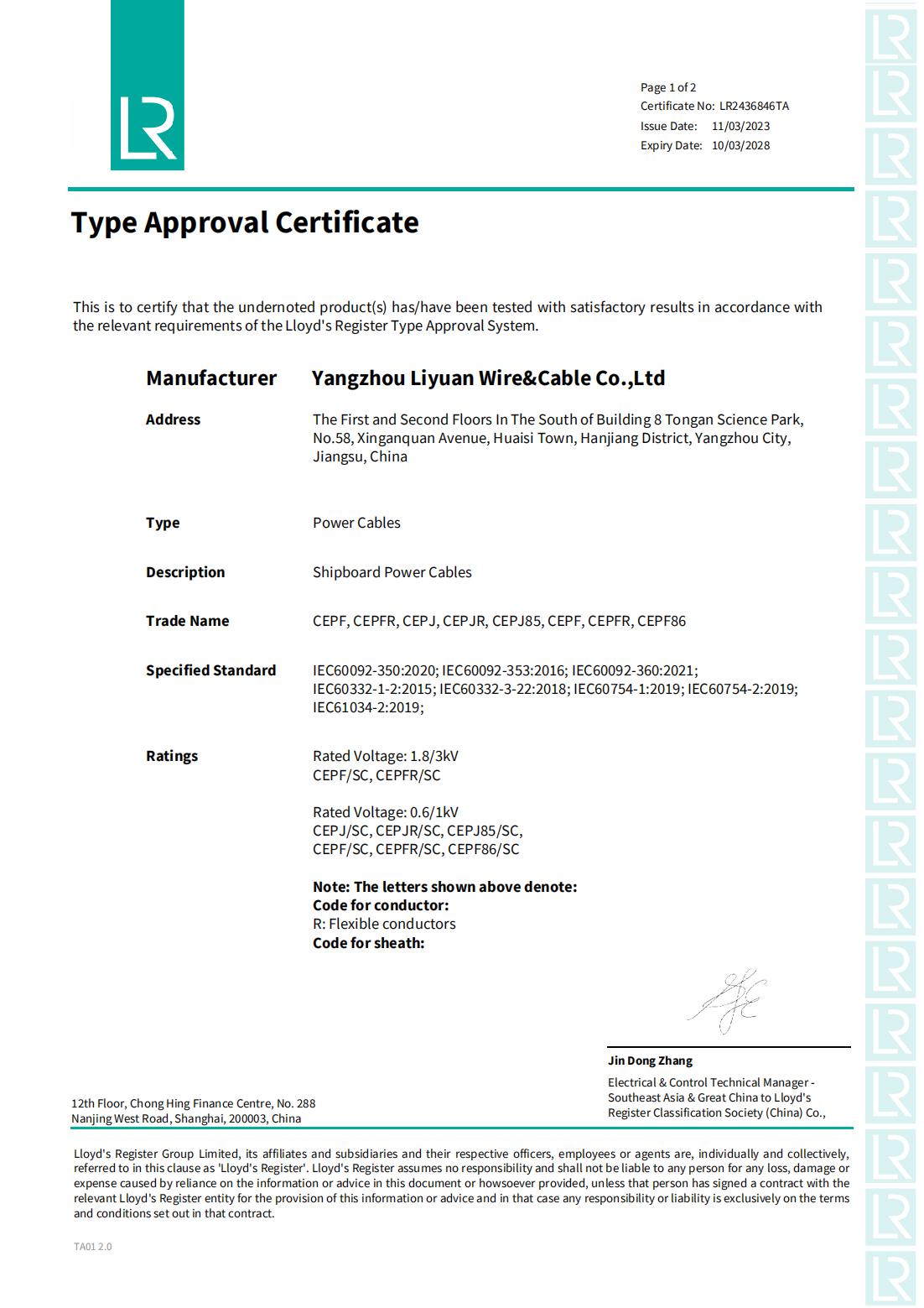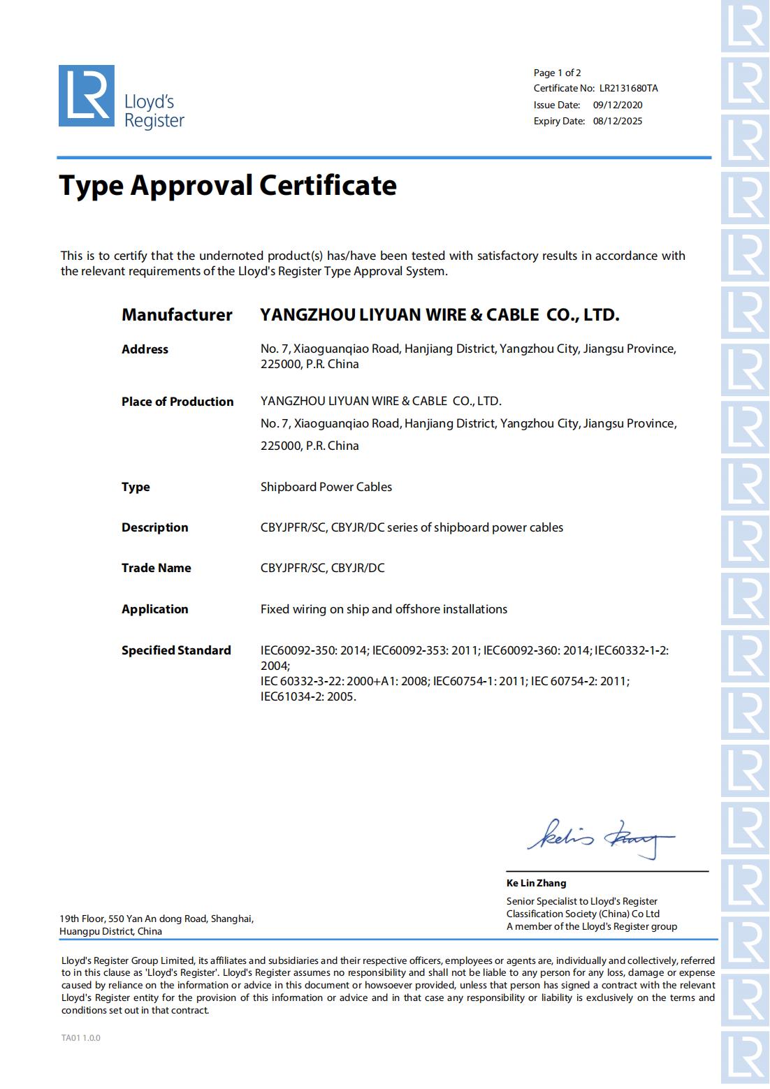 CERTIFICADO DA SOCIEDADE DE CLASSIFICAÇÃO LR