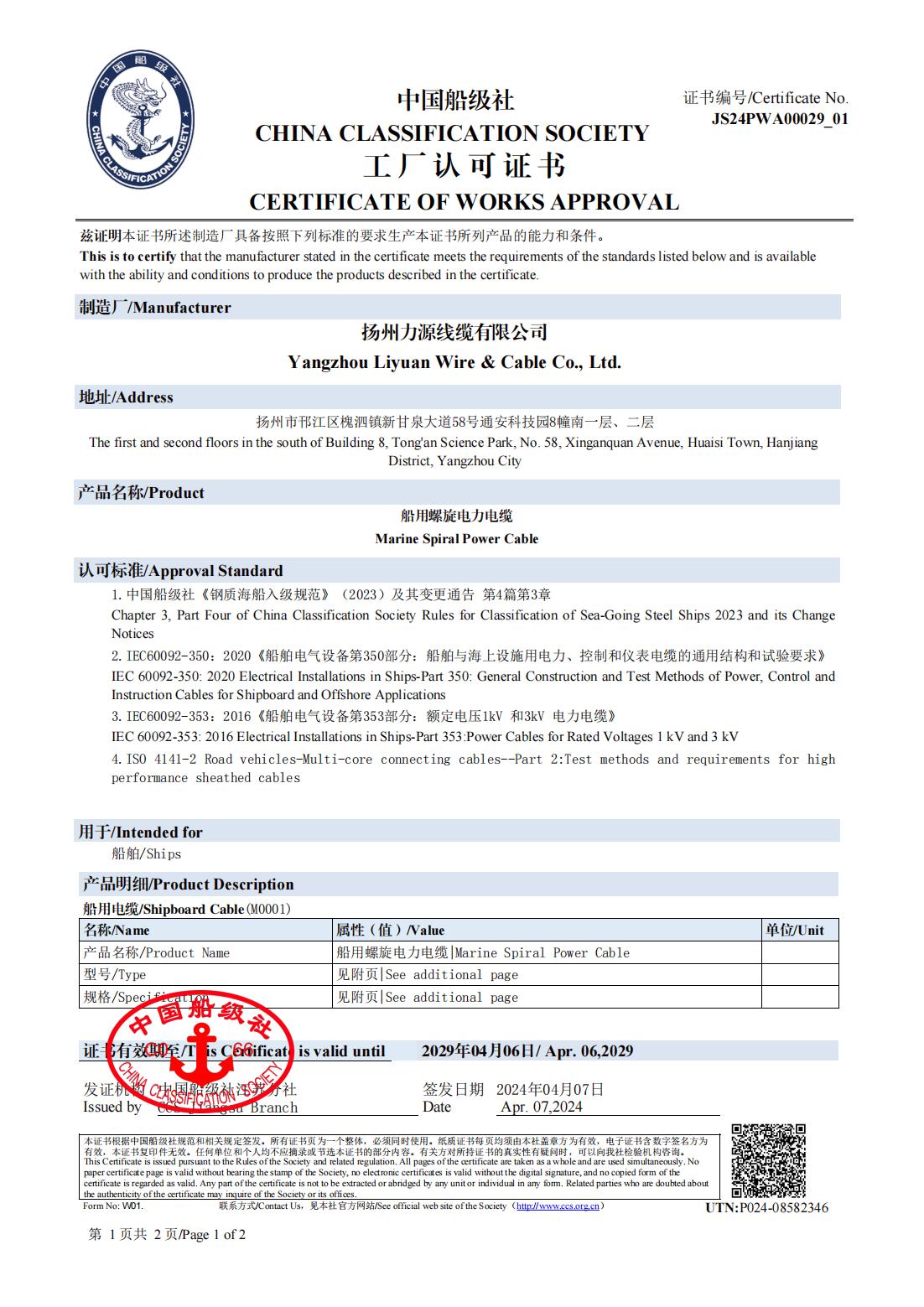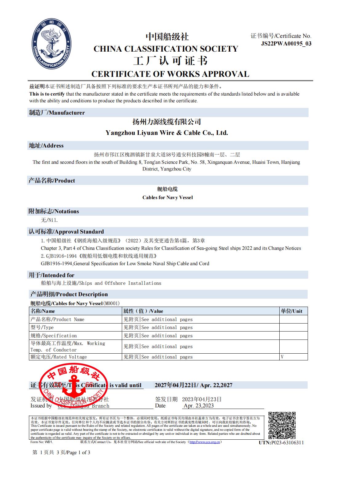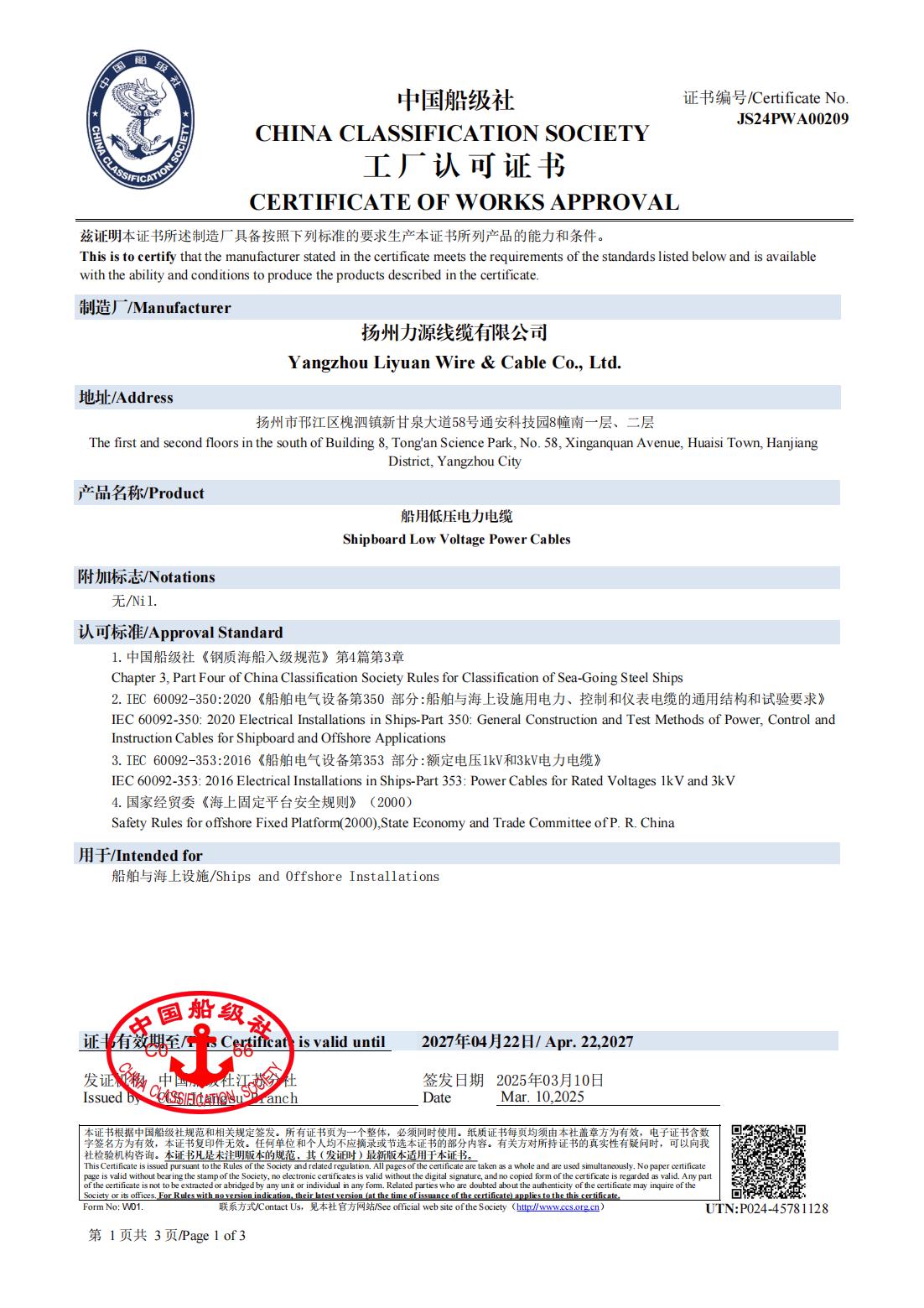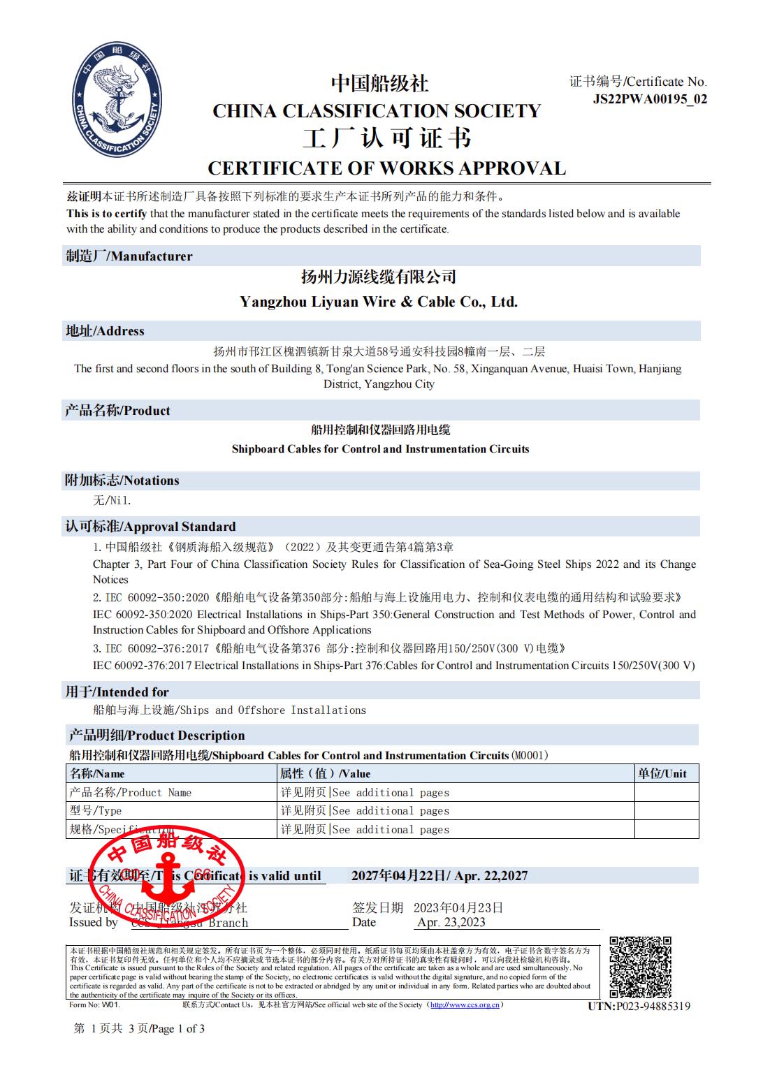 CERTIFICADO DA SOCIEDADE DE CLASSIFICAÇÃO CCS CHINA